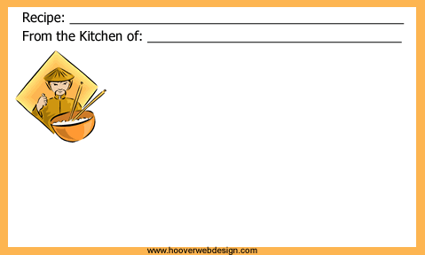 This free chef theme recipe card has an orange border with